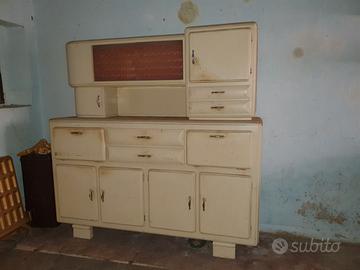 Bella credenza vintage anni '50 Sportelli, cassetti e vetri scorrevoli intatti Misure nella terza foto