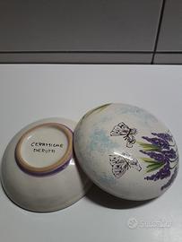 Bella scatola di ceramica "Deruta " con un delicato dipinto fatto a mano, che rappresenta la natura.
