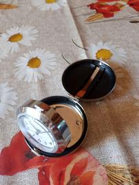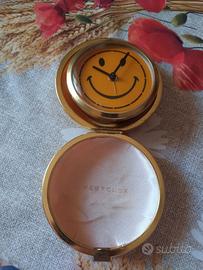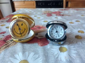 Vendo 2 orologi funzionanti con sveglia quello in acciaio è a pile, mentre quello con la faccina emoji della marca tedesca Westclox è meccanico con la carica a molla e suoneria per la sveglia