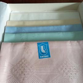 Magnifici asciugamani in fiandra di puro lino a marchio Bellora – modello “Dama Lombardia Festoni” – presenti nella scatola originaria di 6 asciugamani, solo n. 5 asciugamani nei seguenti colori delicati: rosa, verdino, azzurro, giallino e bianco. Misura 65x120 più 25 cm di frange per parte. Qualità al top, davvero molto belli!