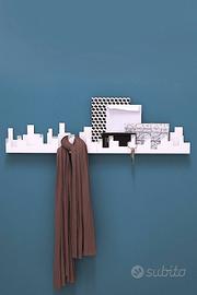 L'appendiabiti, rivisitato e arricchito di allegria. Lo skyline tridimensionale di Belleville è creato piegando l'acciaio tagliato al laser e offre un posto dove depositare la posta, svuotare le tasche e appendere gli oggetti. Una soluzione funzionale ma giocosa ai problemi domestici più banali.