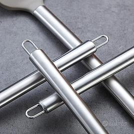 Acciaio inossidabile e silicone di alta qualità: la testa in silicone si combina con l'impugnatura in acciaio inossidabile di alta qualità per un uso quotidiano senza rotture. Progettato per non piegarsi, rompersi o arrugginire. Se vuoi appendere gli utensili da cucina con il tuo portautensili. Non è un problema. Basta usare i nostri ganci per utensili d'oro per appenderli.