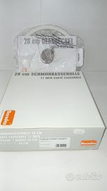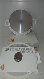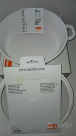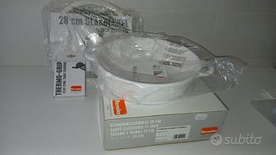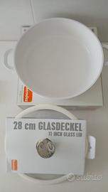 Berndes, tegame in ceramica, due manici, cm 28 con coperchio in vetro e silicone + due presine. Nuovo mai usato. Come da foto