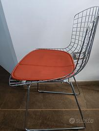 Sedia Bertoia, struttura cromata in tondini saldati completo di cuscino in pelle pieno fiore di colore arancio tod's. Ho la disponibilità di sei sedie