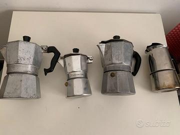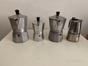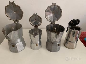 Nr. 4 caffettiere funzionanti, come in foto, di cui 2 davvero vintage (oltre i 30 anni forse) e di cui una caffettiera è una bellissima A. Bialetti Crusinallo - Moka Express rigorosamente Made in Italy, insomma un bel cimelio.