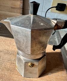 Caffettiera Bialetti moka classica in alluminio pressofuso da 3 Tazze. Made in italy prodotto ad Omegna con alluminio anni 70/80. Manico con leggera usura del tempo che ne attesta l'autenticità e il carattere vissuto. Guarnizione in ottime condizioni. Perfetta per chi ama il vero caffè all'italiana.