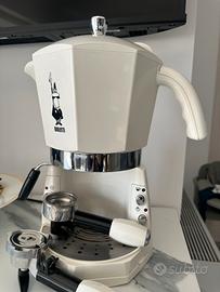 Sistema TRIO Bialetti che consente l'utilizzo indistintamente del caffè macinato, delle cialde o delle capsule. Lancia generatore di vapore utile per creare una crema ricca e corposa.