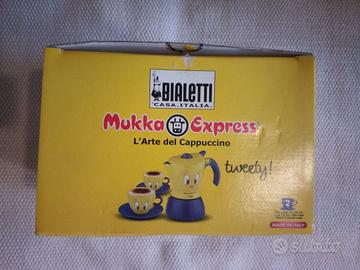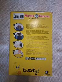 Vendo modello di Bialetti Mukka Express "Tweety", caffettiera per cappuccino 2 tazze, come nuova (mai utilizzata), in confezione originale con qualche segnetto (ma comunque in ottime condizioni), dotata di bicchierino dosatore e istruzioni. Per ulteriori informazioni non esitate a conttarmi.