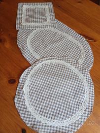 vendo causa inutilizzo due copritavoli beige, un copriletto azzurro, due tovaglie blu, set asciugamani vari e centrini, tutto nuovissimo. 339 1705734