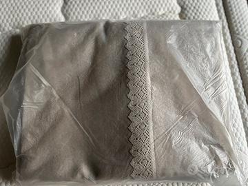 Sopra coperta puro lino e merletti grigia: c’è la foto della coperta piegata € 150
