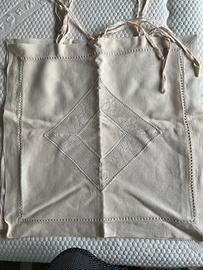 Completo sopra coperta , cuscinii e tende in misto lino e merletti colore panna € 800 c’è solo la foto del cuscino per la composizione della stoffa.