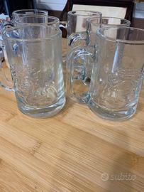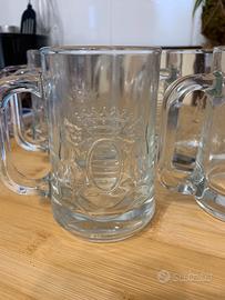 6 boccali di birra vintage in vetro mai usati con decorazione in rilievo