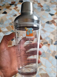 Vendo bicchiere con scritta in rilievo "GIN TONIC", mai utilizzato, in confezione originale. Inoltre Shaker/bicchiere e cannucce per cocktail, nuovo, mai usato.