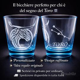 Bicchiere inciso con segno zodiacale fatto a mano