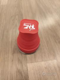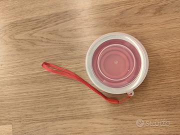con coperchio a pressione e laccetto per tenerlo al polso durante le passeggiate