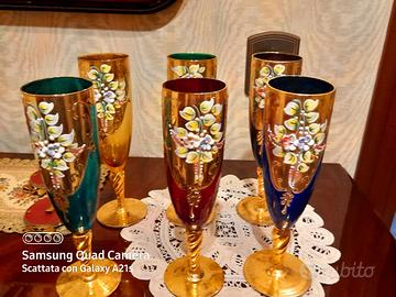 Bicchieri 6 di Vetro do Murano con Oro Integro.