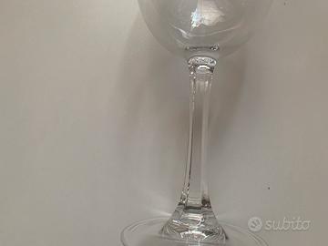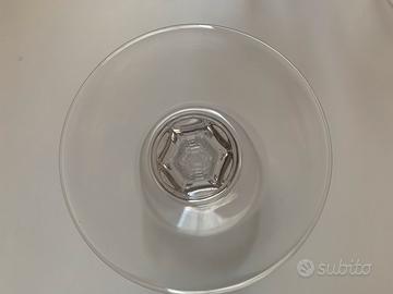 6 bicchieri a calice di vetro con gambo esagonale.