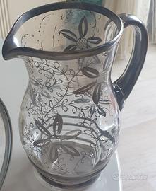 6 bicchieri antichi con brocca tutti intarsiati in Argento