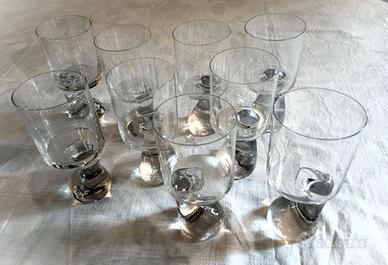 Set di nove bicchieri serie Asimmetrico Smoke progettati da Joe Colombo nel 1964 per tenere il bicchiere e la sigaretta con la stessa mano. Realizzati in cristallo al piombo soffiato a mano da C. J. Riedel in Austria. Condizioni perfette. Marchiati a rilievo sulle loro basi. Misure: altezza 15cm, diametro 7cm. Bicchiere esposto al Moma di New York. Senza scatola. Ritiro a Mano.