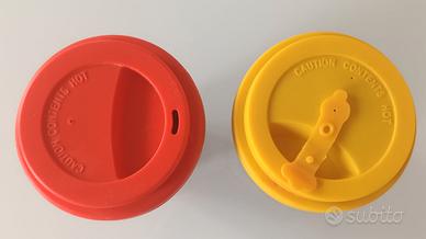 Vendo due graziosi bicchieri riutilizzabili, perfetti per il caffè o altre bevande. Sono realizzati in bamboo e silicone, con un design accattivante.