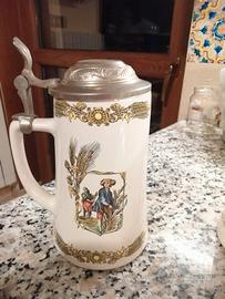 Set 5 bicchieri birra Splugen. Tappo in peltro 95%.Usati solo come soprammobili.