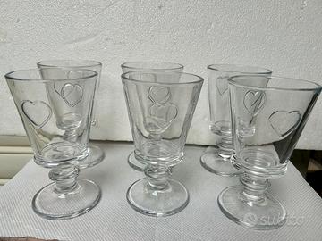 Bicchieri Calice Shabby Chic Country Vetro Con Cuore 6pz.