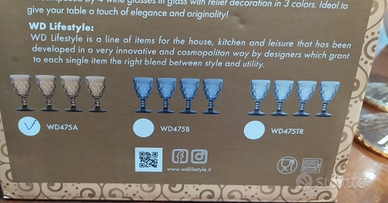 Per mancanza di spazio vendo bicchieri a calice , colore Ambra marca WD LifeStyle modello Dubai ancora nella loro scatola , nuovi senza nessuna scalfitura o difetto mai usati
