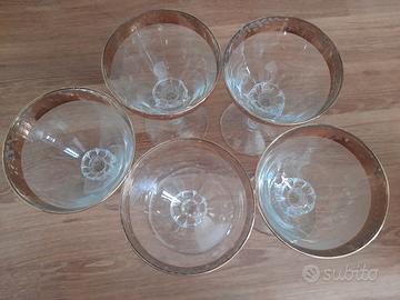 Bicchieri calici vintage in vetro e bordo dorato. Numero 5. In perfetto stato.