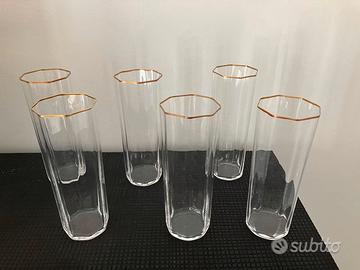 6 bicchieri ( + 3 con bordo un po’ sbiadito) in vetro soffiato a forma quadrata decorato con bordo dorato. Design Carlo Moretti. - - - - - - - 85E