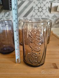 Bicchieri Coca Cola a forma e dimensione di lattina da 33cl. In perfetto stato. Colori: 3 leggermente color marrone, 1 colore viola. Il colore è molto tenue.