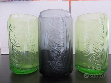 VENDO 9 BICCHIERI COCA COLA 6 BICCHIERI MODELLO CONTOUR VETRO BIANCO 3 BICCHIERI MCDONALD'S IN VETRO LATTINA COLORATI 9 BICCHIERI 20 EURO
