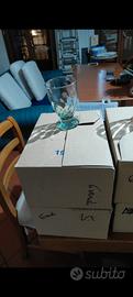 Bicchieri colorati, 12 gialli, 12 verdi, 12 rosa. Vendibili anche singolarmente a scatola da 6. Prezzo €. 9.00 a scatola