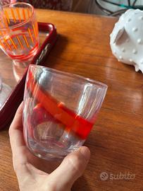 Vendo bicchieri colorati galbiati. Quelli a base trasparenti hanno dei leggeri segni come si vede in foto Consegna a mano in centro a Milano