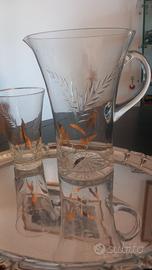 Set coordinato 6 bicchieri con caraffa. Vetro smerigliato ed oro zecchino. Oggetto vintage come nuovo.