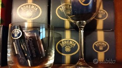 Vendo 6 calici da vino bianco in cristallo di Boemia più 6 bicchieri da vino più uno da vino rosso. Nuovi con scatola originale e bollino adesivo.