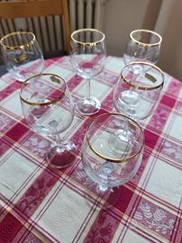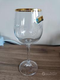 6 bicchieri-calici di cristallo Bohemia con bordo colore oro. Mai usati, come nuovi..