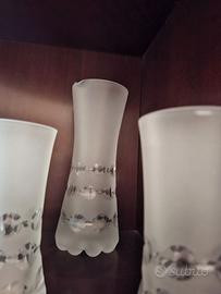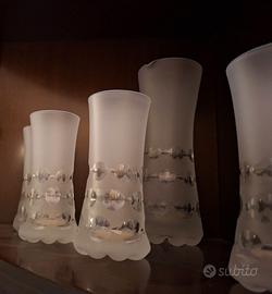 Seti di 4 bicchieri con vaso a colonna in cristallo satinato, manufattura tedesca, design di Peill e Putzler. Forma cilindrica con finitura opaca e decorazioni esterne