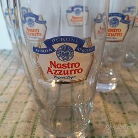 Numero 6 bicchieri Peroni Nastro Azzurro in condizioni perfette, più 6 simpatici sotto bicchieri di altra marca .