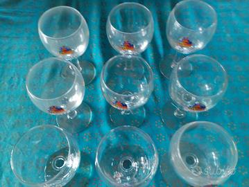 9 bicchieri in vetro alti circa 17 cm diametro 8 cm con impressa la marca Leffe