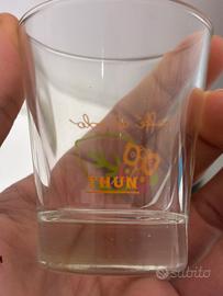Bicchierino da caffè THUN in vetro, con decorazione colorata e scritta “caffè al volo”. Perfetto come idea regalo o per collezionisti THUN.
