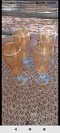 4 bicchieri in cristallo da champagne vintage ,lavorati,colore oro altezza cm.15