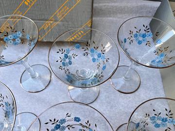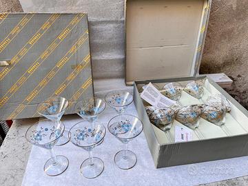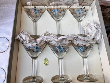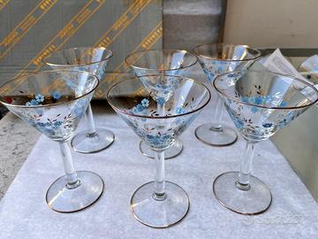 N. 12 bicchieri da cocktail, decorati a mani vintage. Made in Italy, della Decor Cristalleria con certificazione. Le confezioni presentano segni del tempo in quanto sono rimanenze di magazzino. Disponibile per ulteriori informazioni