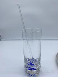 set di 6 bicchieri in cristallo da drinking vintange con fondo pesante e colore blu royal trasparente completo di tumbler alto e bar spoon anni 70 mai usato