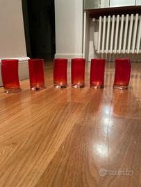 In vendita 6 bicchieri da liquore di colore rosso di vetro.