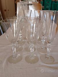 11 tra calici e flut di un servizio anni 80 per vino e spumante uno è caduto