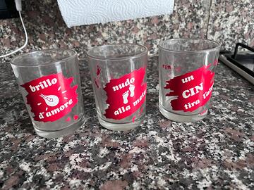Set di 3 bicchieri taglio da tavola in vetro da collezione con frasi iconiche