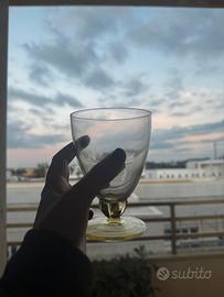 Il set è caratterizzato da una coppa in vetro trasparente e uno stelo con base in una tonalità di giallo. Linea "Gulli", disegnata da Siegfrid Ståhl per la cristalleria svedese Skrufs Glasbruk nella prima metà del XX secolo (circa anni '50).