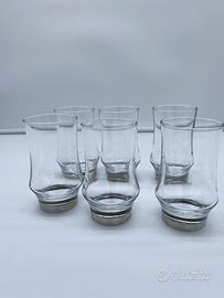 set di 6 bicchieri da wisky in cristallo con base in argento vintange anni 70 mai usato