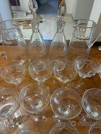 Vendo bicchieri di cristallo 4 set di varie grandezze ognuna da 12 pezzi più 2 brocche e 2 bottiglie con tappo per il vino 1 porta ghiaccio Anno 1930