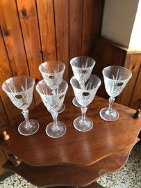 Set completo di bicchieri di cristallo di Francia in ottime condizioni. N. 6 calici per vino, N. 6 calici per acqua e n. 6 bicchieri per amaro.